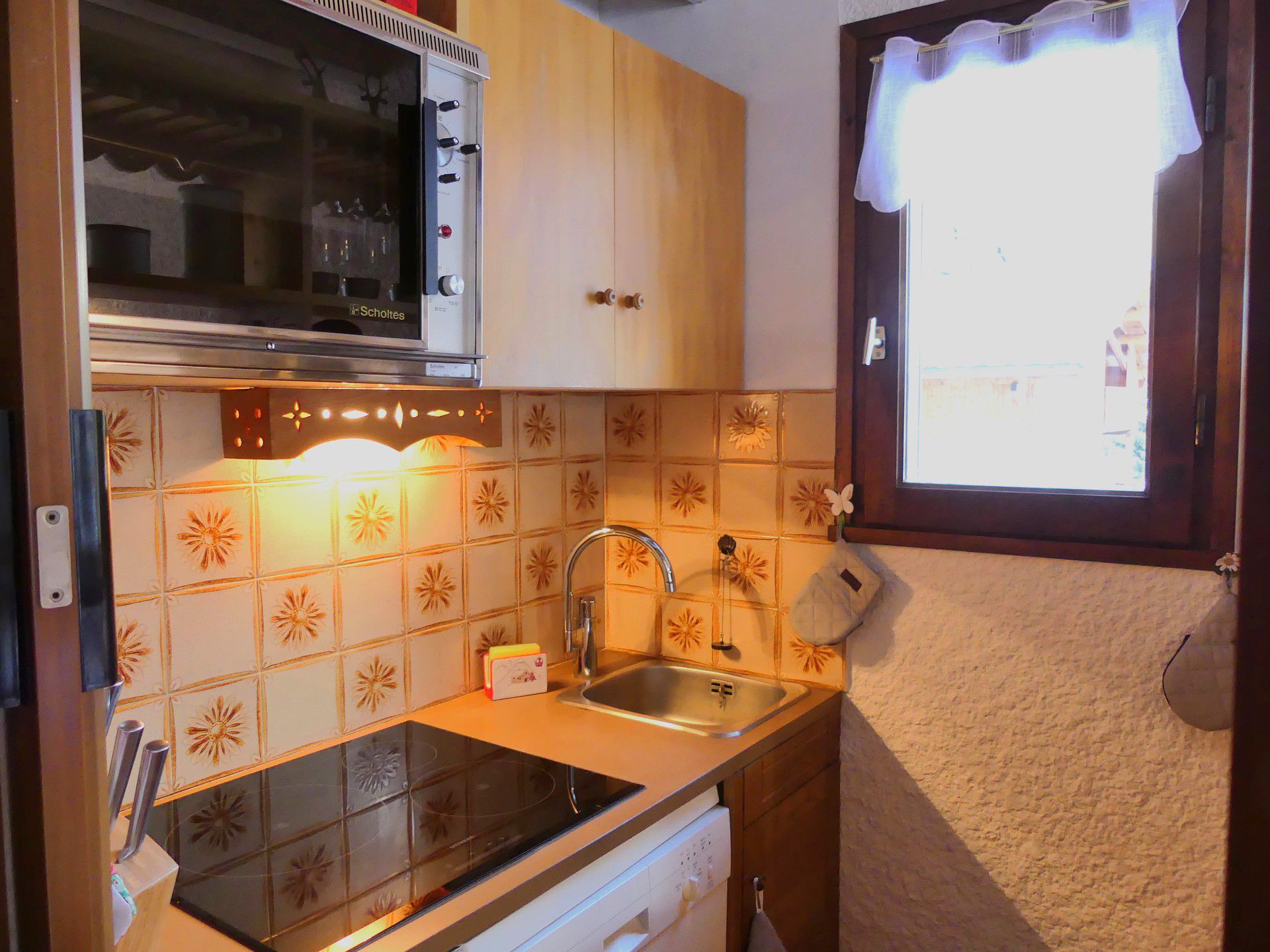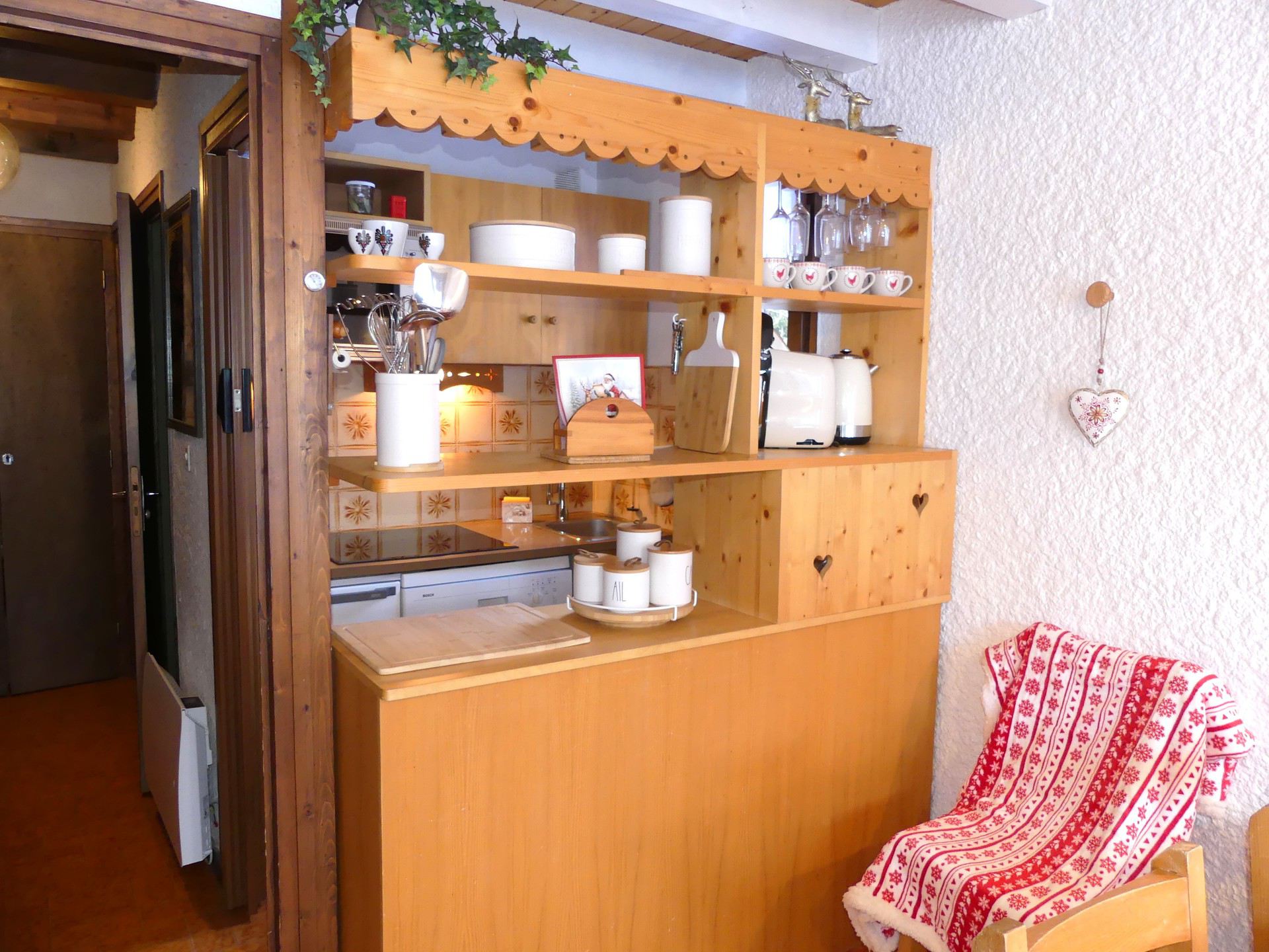 COIN CUISINE avec lave-vaisselle, four, plaque induction 3 feux, réfrigérateur, cafetière Tassimo, bouilloire électrique, grille pain, service à raclette.