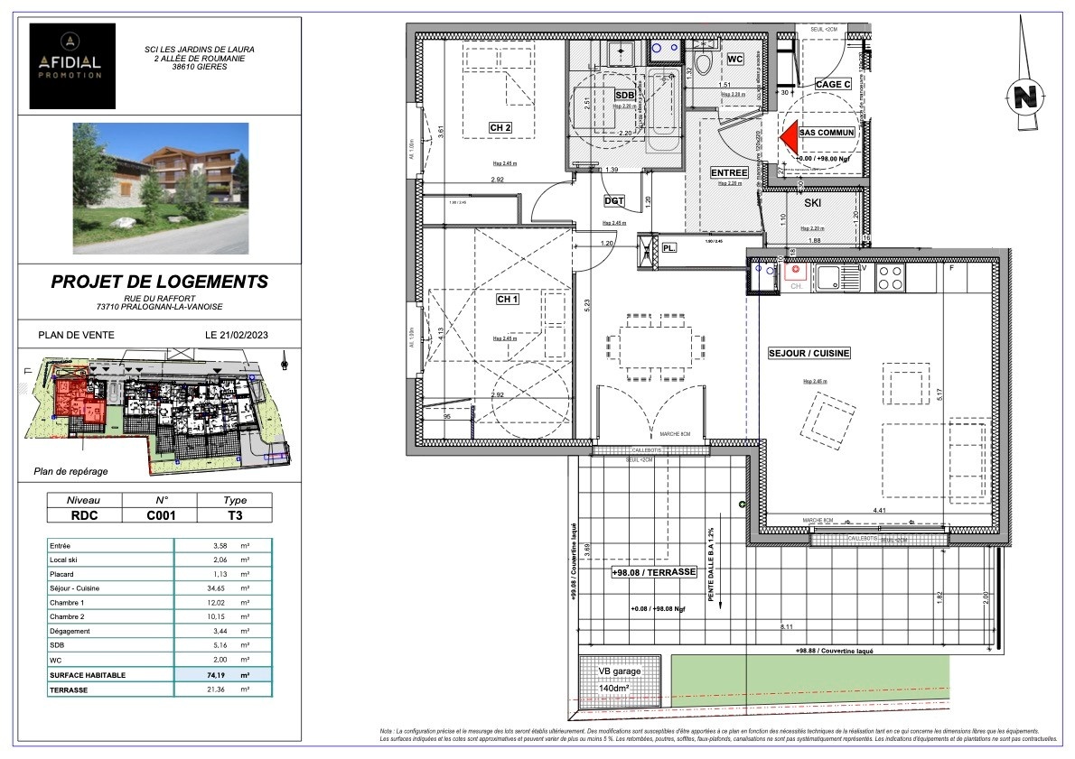 | Surface totale | 74.19 m² |